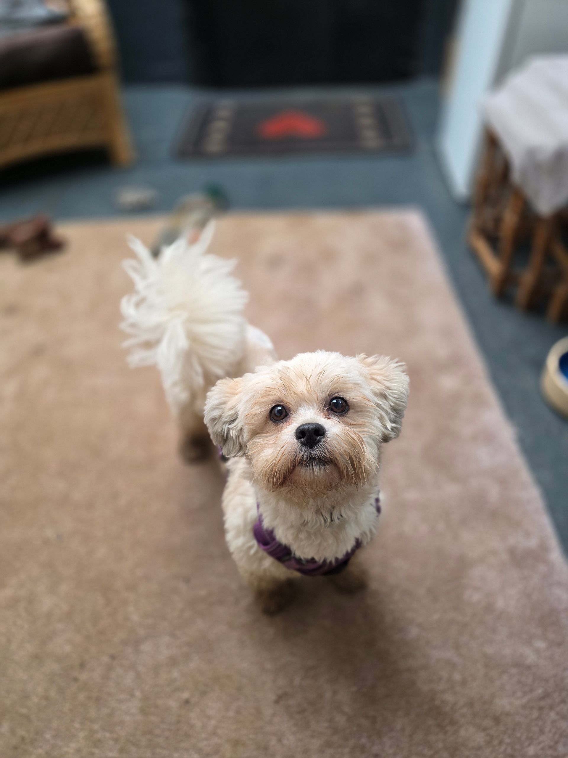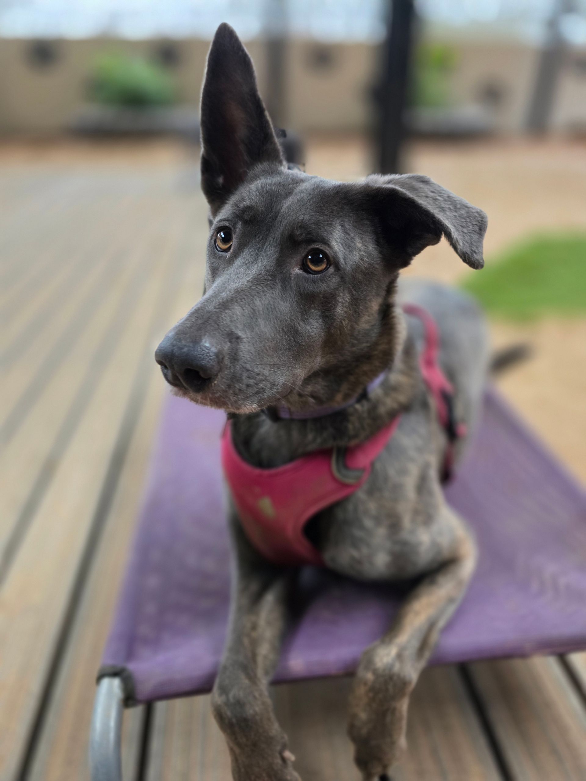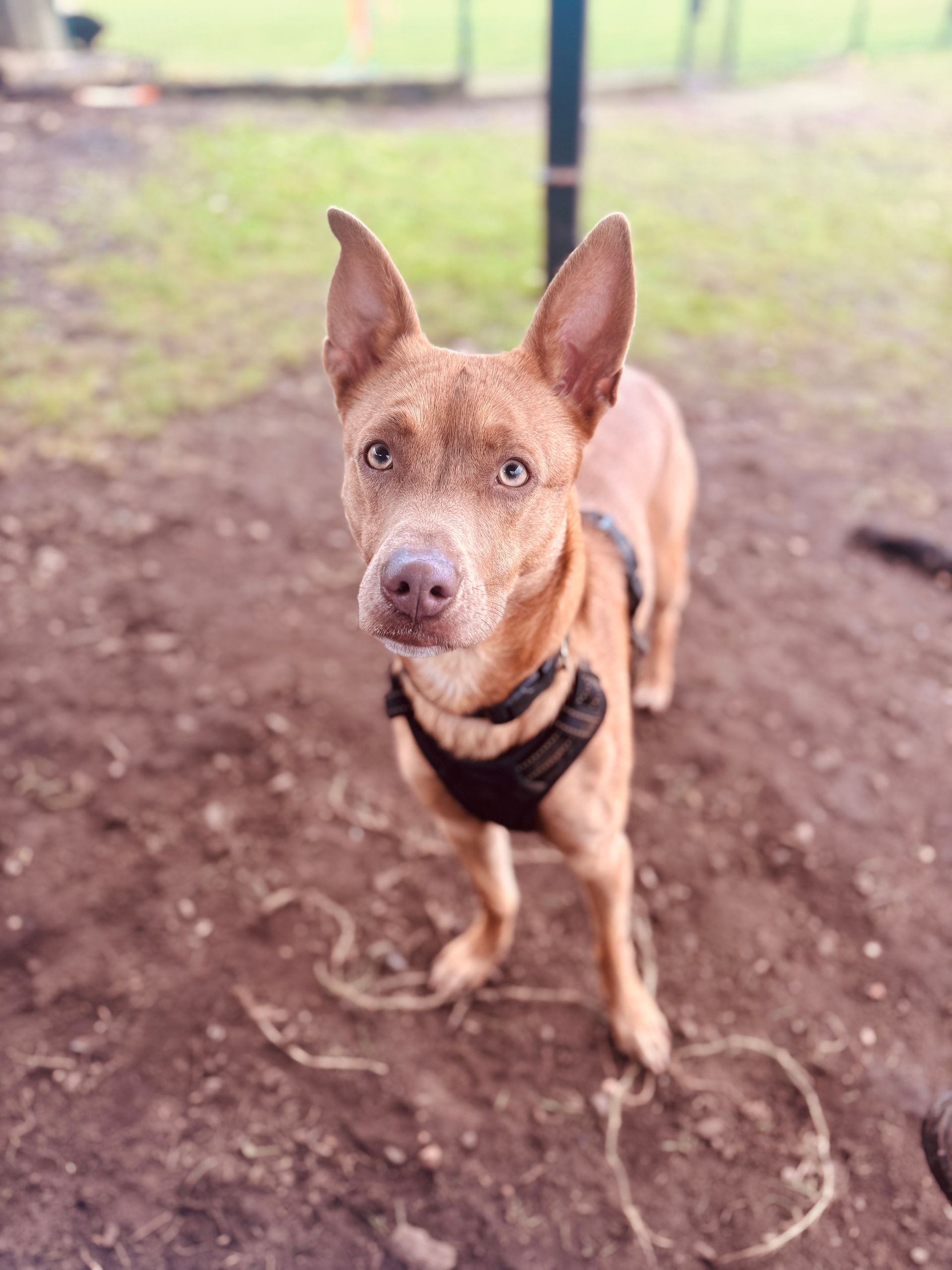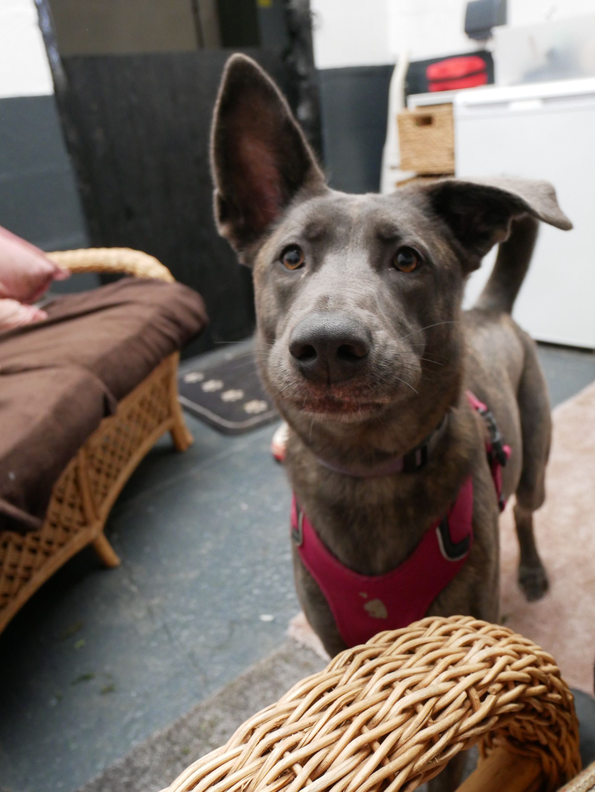 - History: Rizzo was surrendered to the rescue after her previous family realised they couldn’t meet her needs for stimulation, time, and exercise. The busy household environment was overwhelming for her, and she spent a lot of her time separated from the family. Rizzo responds well to her current positive training after previous bad experiences.