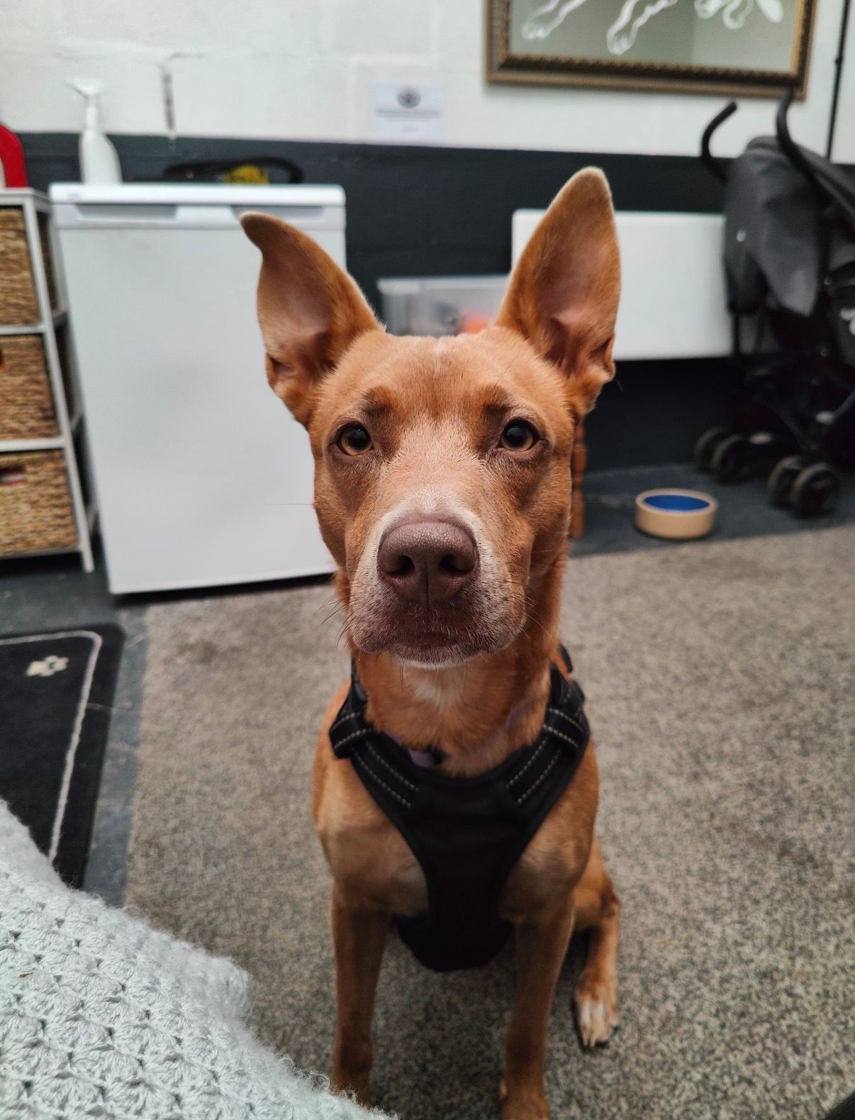 - Home environment: Amber is currently in the care of one of our volunteers. She has proven to be the ideal companion; she is house-trained and has quickly settled into her new routine. She walks well on a lead and harness, paying close attention to her foster carer when out and about. Amber would suit a home where someone is usually around. Ideally, she would be the only dog in an adult-only household with access to a secure garden where she can run and play safely.