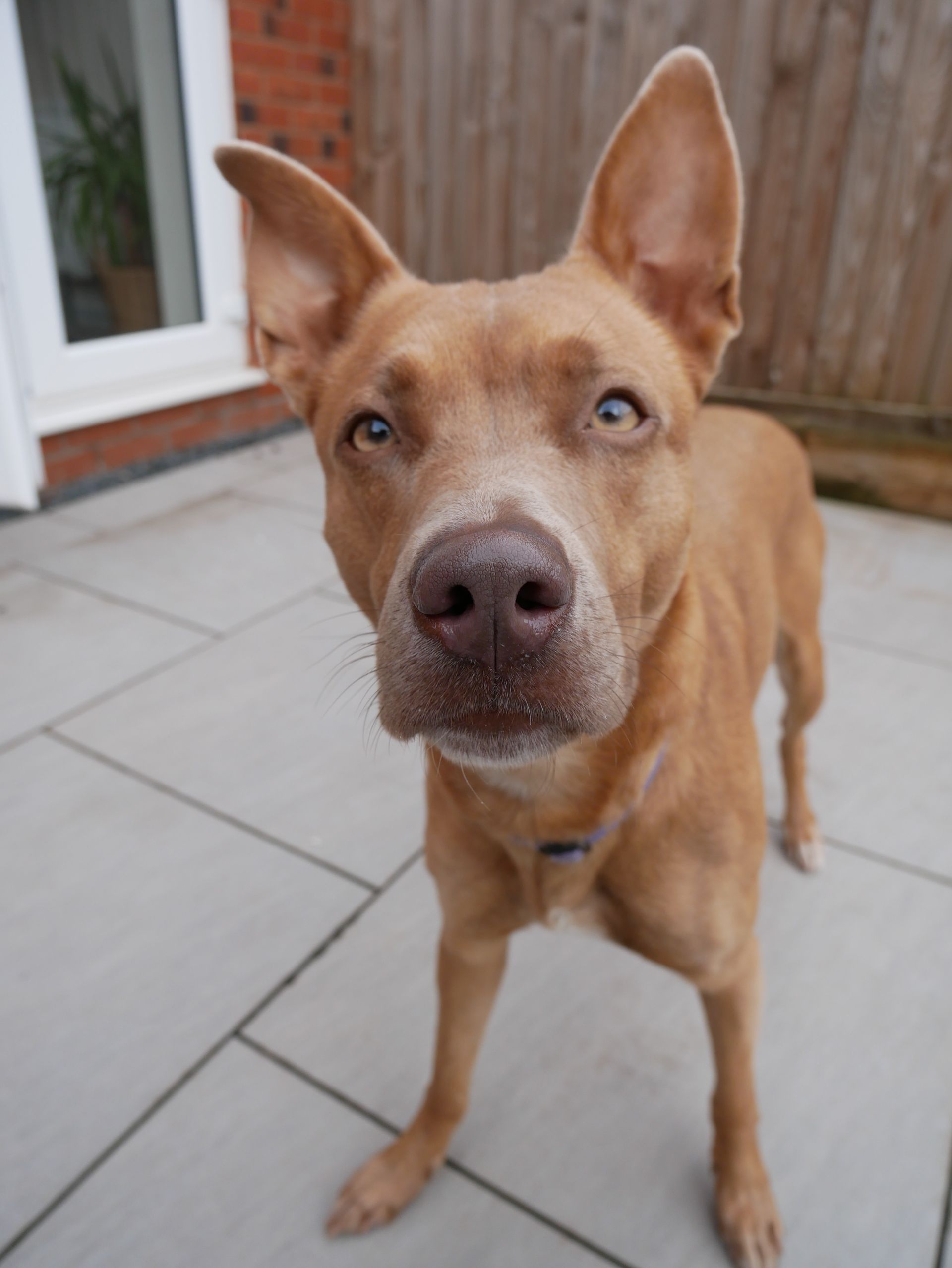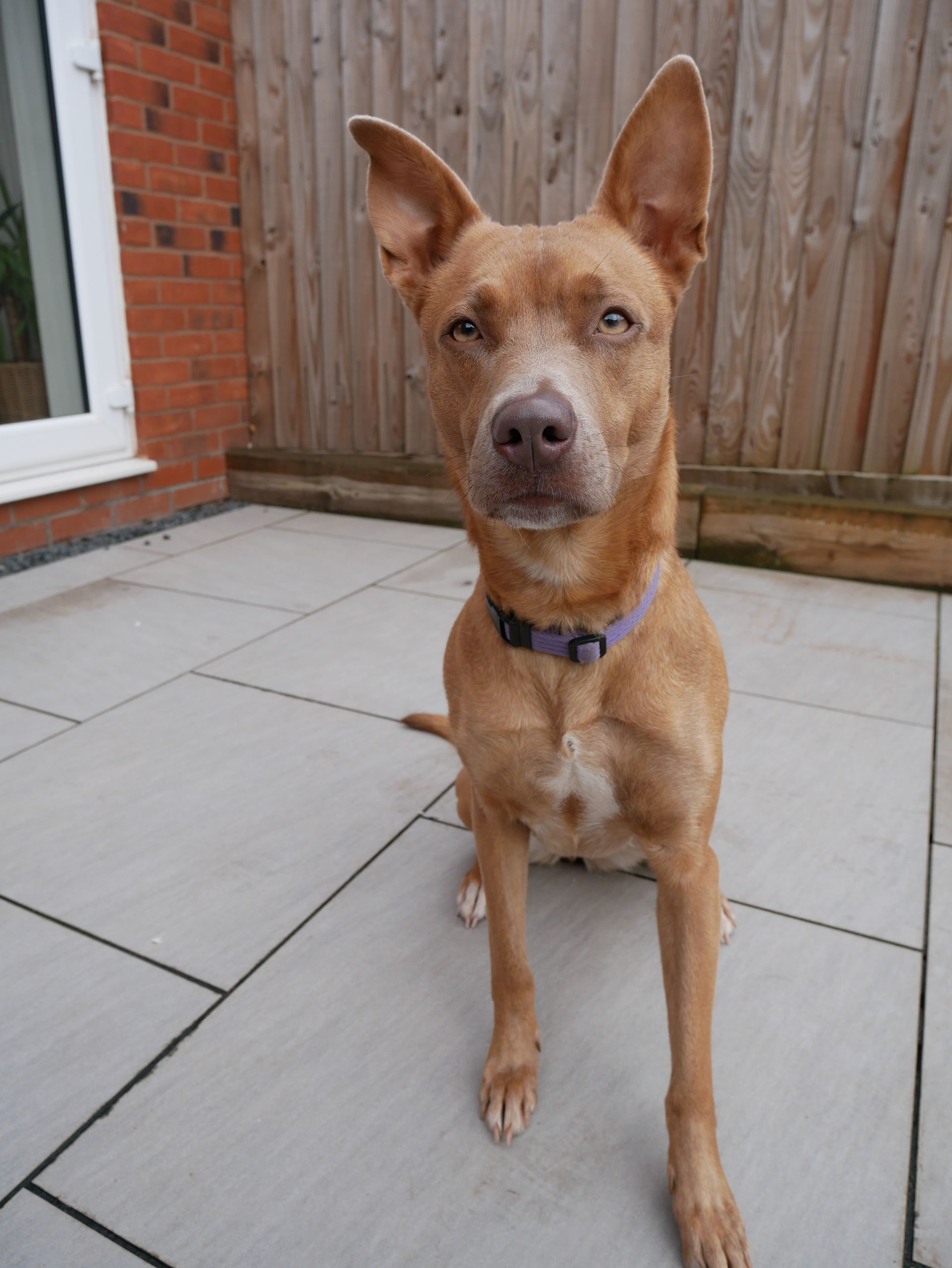 - Home environment: Pete had a short term foster out of kennels but found it difficult to adapt to his new environment, he would become startled by sudden noise both inside and outside of the house. In the first few days Pete would toilet in the house but did quickly learn to toilet out in the garden. Pete was destructive when left alone so would suit someone who is home for most of the day and who would be willing to take it slowly and build up his confidence at being left alone. A secure garden with high fences is essential.